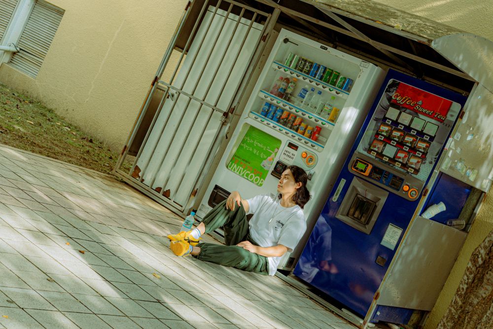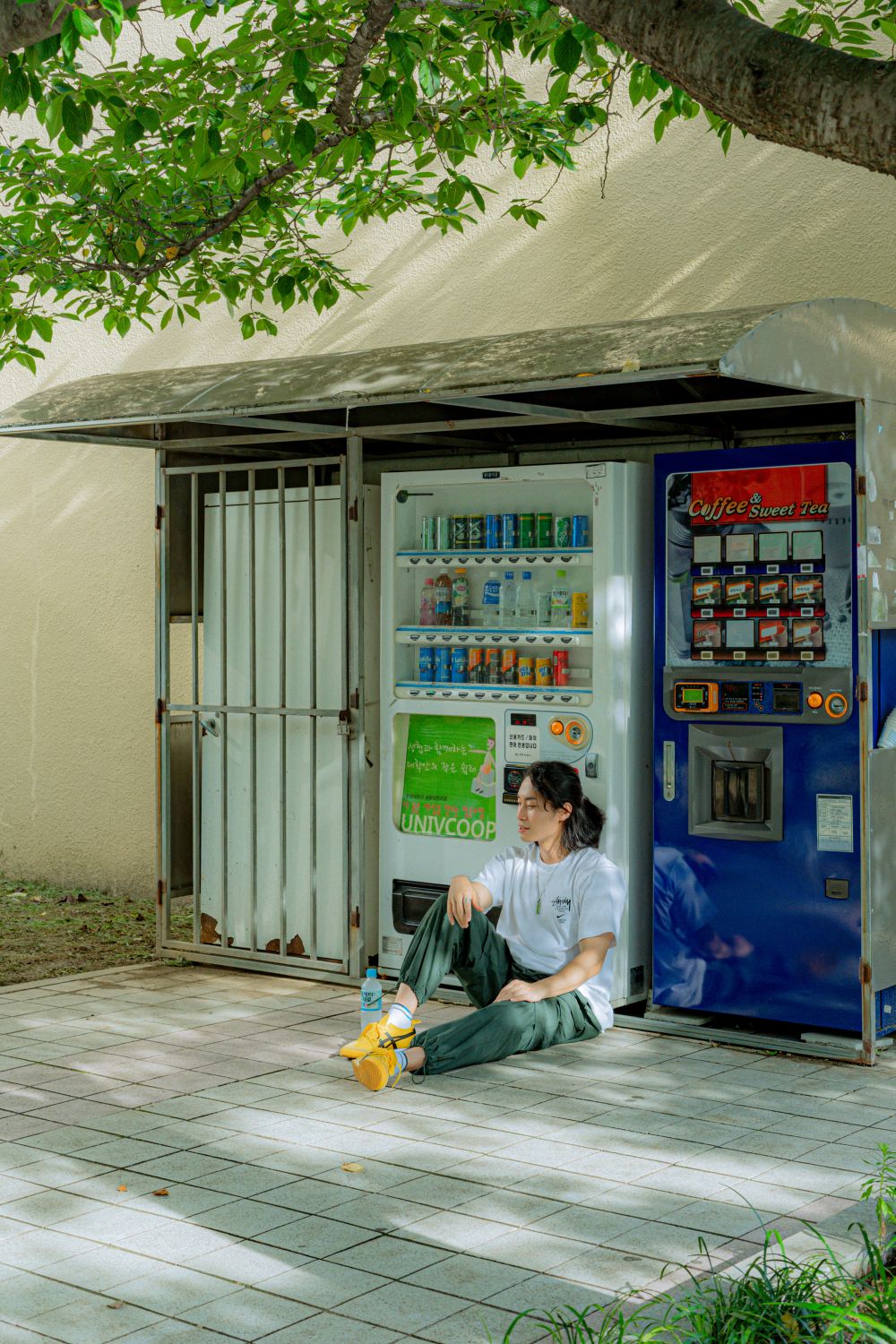 요 정도 배경이면 여름의 청량함도 예쁘게 담을 수 있겠다 싶어서 장소로 지정하고 일요일 낮, 부경대학교 대연캠퍼스 체육관 D22동 옆 자판기로 향했답니다.